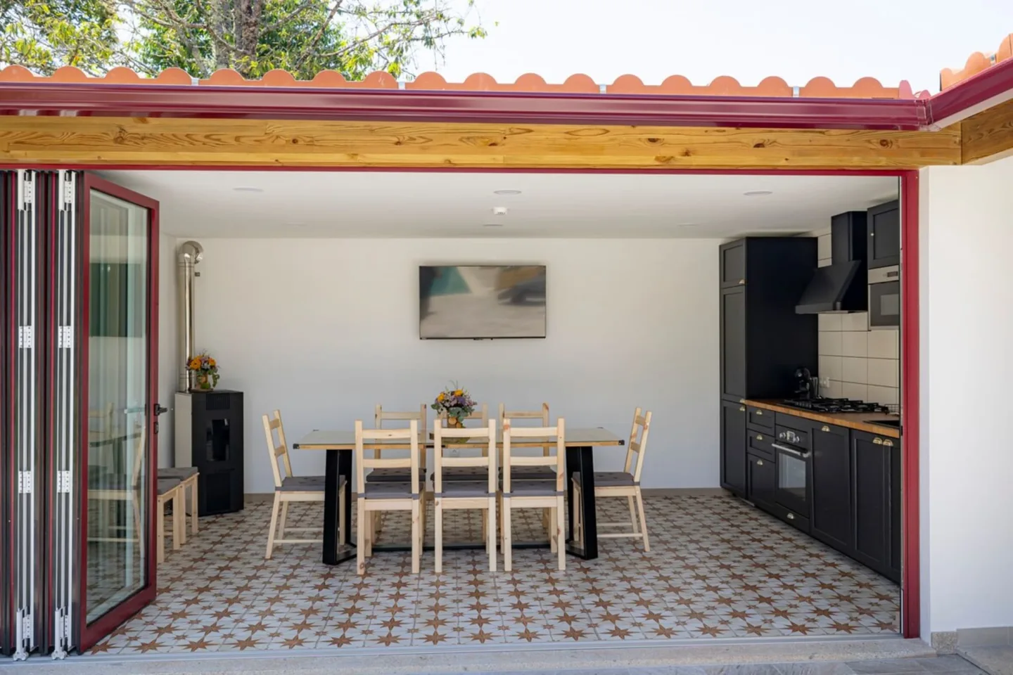 Cruzeiro’s Guest House está diseñado especialmente para grupos grandes, lo que lo convierte en una alternativa ideal para reuniones familiares, escapadas con amigos o incluso retiros privados. La propiedad puede alojar a más de 16 personas, distribuidas en varias unidades (T3, T2, T2 y T0), con un total de 8 dormitorios dobles, además de futones y sofá cama.