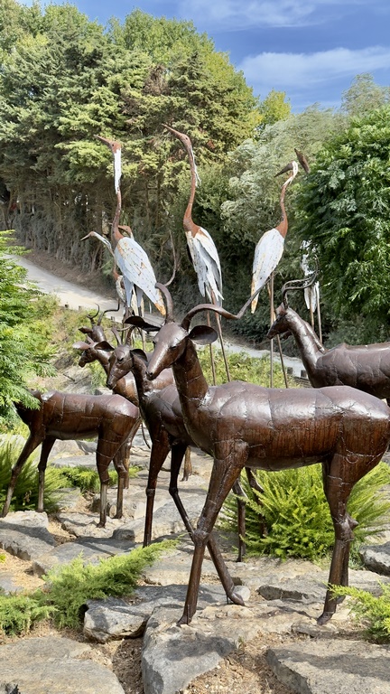 • Esculturas monumentales: varias figuras budistas —incluido un Buda reclinado de gran tamaño— y decenas de esculturas inspiradas en el arte asiático esculpidas en piedra.